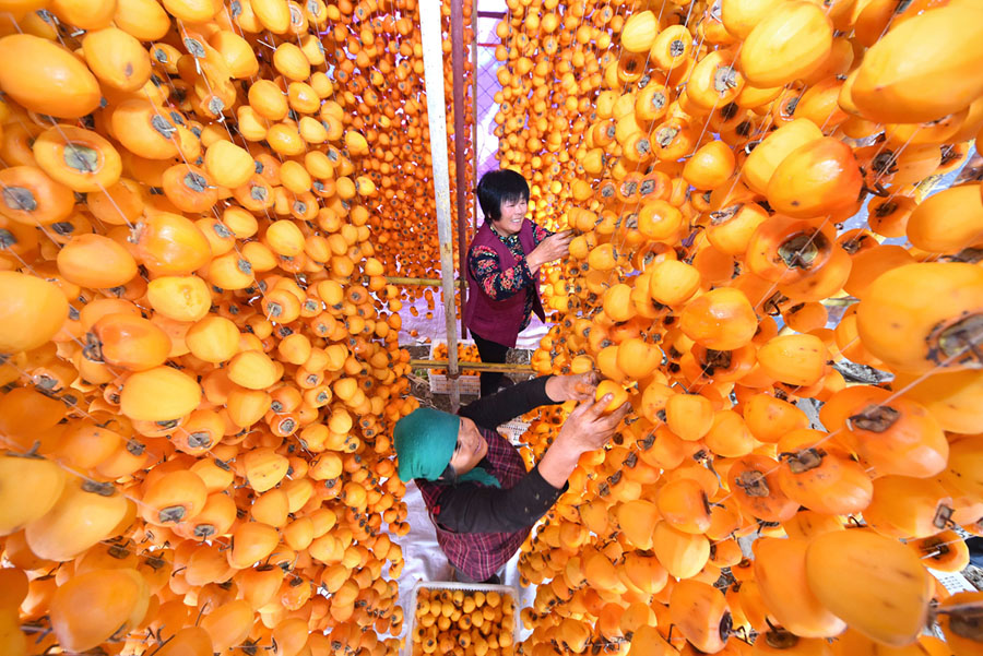 Read moreFarmers hang persimmons to dry them on October 24, 2017, in Zibo, Shandong Province. Around 50,000 acres of dried persimmons were exported to other countries and regions last year. #