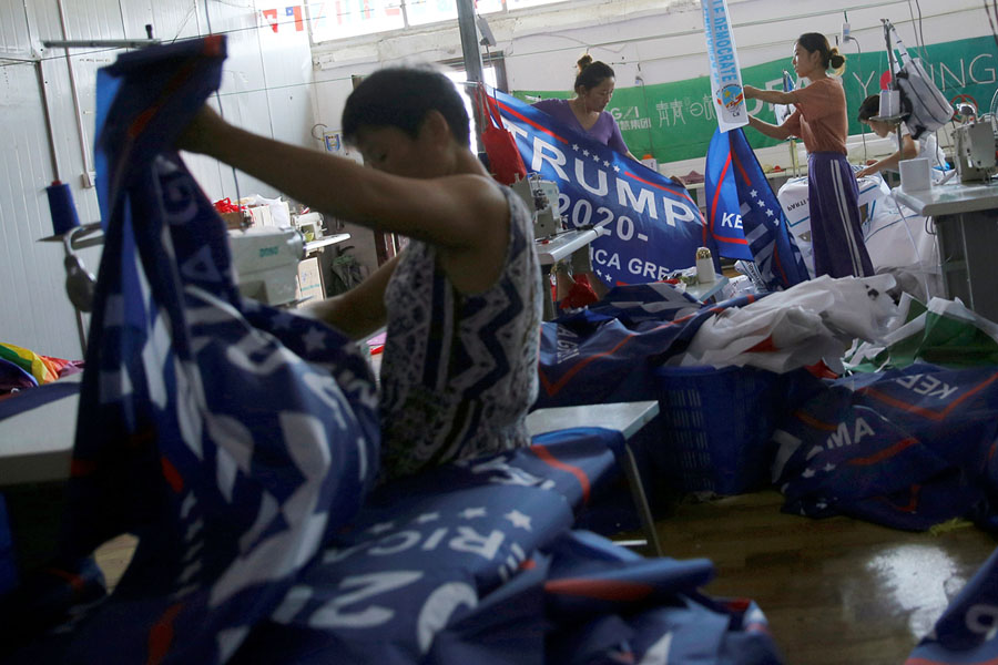 Read moreWorkers make flags for U.S. President Donald Trump's "Keep America Great!" 2020 re-election campaign at the Jiahao flag factory in Fuyang, Anhui province, China, on July 24, 2018. #