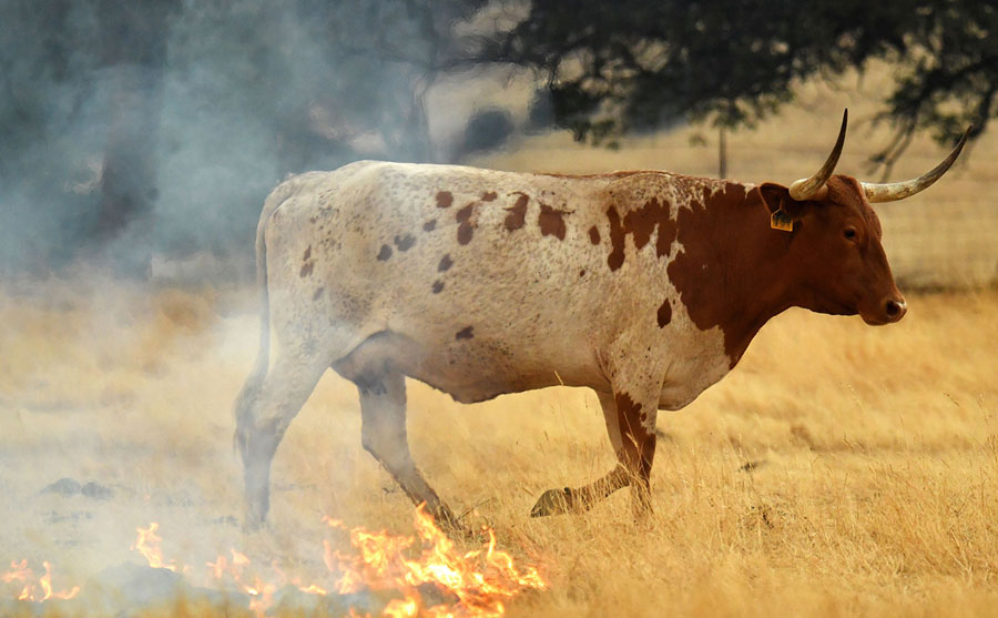 Read moreA cow walks through a burning pasture in Guinda, California, on July 1, 2018. Californian authorities have issued red flag weather warnings and mandatory evacuation orders after a series of wildfires fanned by high winds and hot temperatures ripped through thousands of acres. #