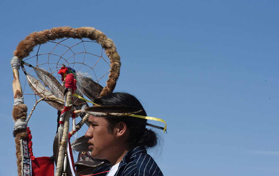 Read moreWes Redday from the Cheyenne River Reservation holds a sacred staff during a morning prayer near an encampment for the Fort Laramie treaty riders in Chadron, Nebraska, on April 23, 2018. #