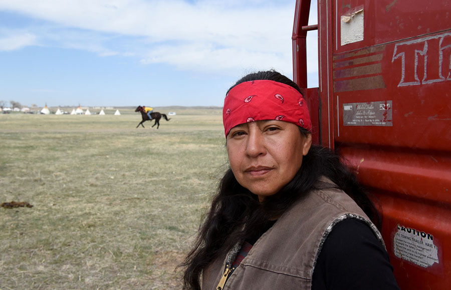 Read moreLucille Contreras, one of the Fort Laramie treaty riders, from the Pine Ridge Reservation, poses for a photo in the tribal area on the grounds of the Fort Laramie National Historic Site on April 29, 2018. #