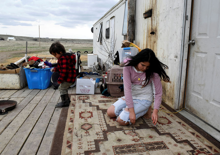 Read moreOne of Beatrice Lookinghorse's granddaughters, Rozelynn Whitebull, plays near an abandoned house in the backyard of Beatrice Lookinghorse's trailer on the Cheyenne River Reservation on May 31, 2018. #