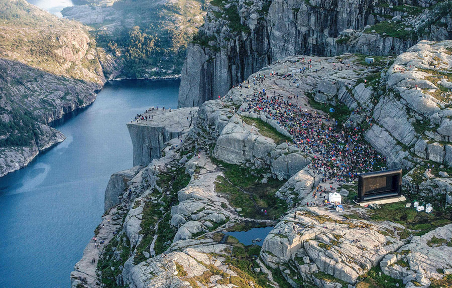 Read morePeople gather in the mountains near Preikestolen (The Pullpit Rock) in Forsand, near Stavanger, western Norway, on August 1, 2018, to see the movie "Mission: Impossible Fallout". Some of the scenes in the movie were filmed at the Norwegian landmark last November. #