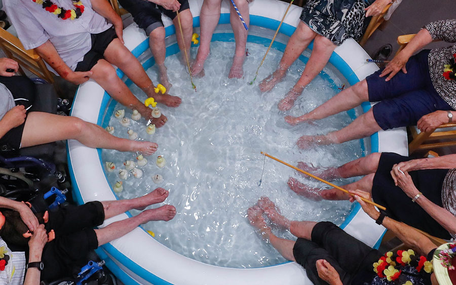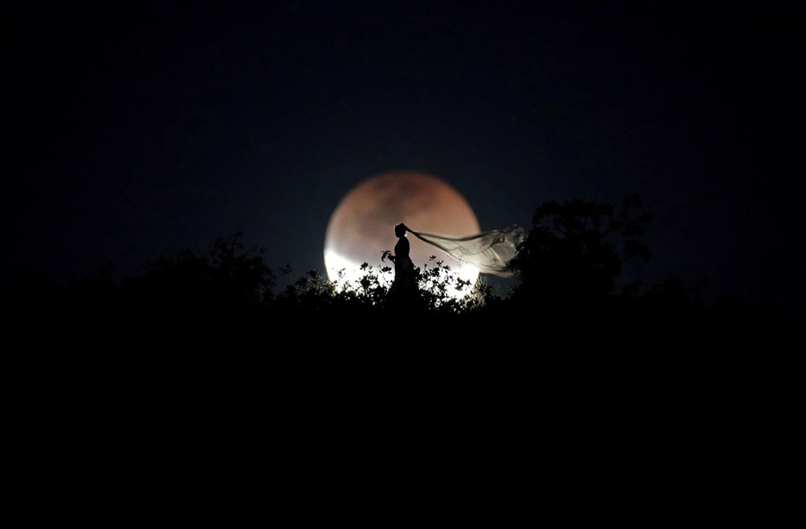 A lunar eclipse observed from Brazil, keeping cool in Europe’s heatwave, wildfires tear through parts of California, a controversial election takes place in Zimbabwe, cliffside movie viewing in Norway, a fridge filled with felt sodas in California, an armored personnel carrier dropped into the sea near Lebanon, a “flying motorcycle” in China, and much more.