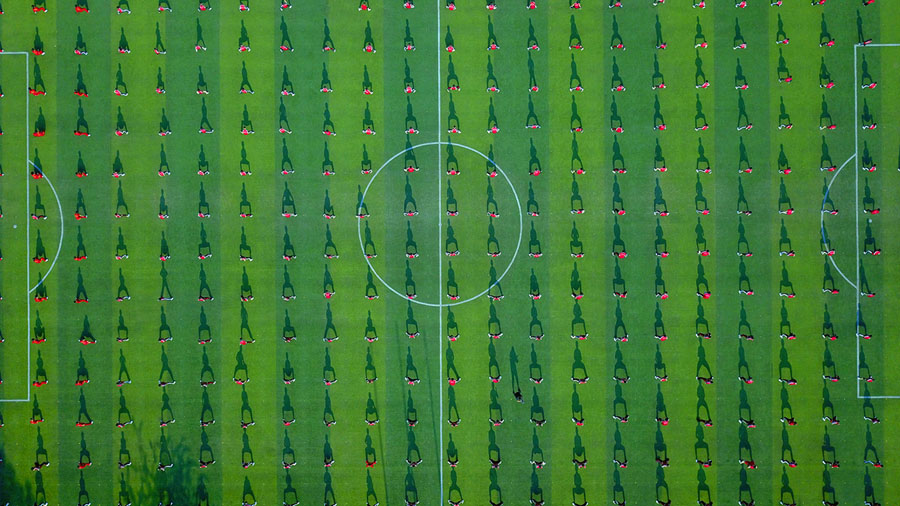 Read moreAn aerial view of teenagers performing martial arts on a playground on August 4, 2018, to welcome the upcoming National Fitness Day, in Nantong, Jiangsu province, China #