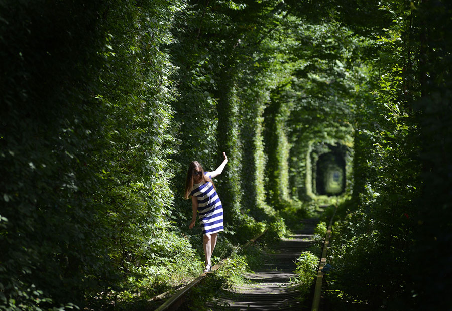 Read moreA girl walks along former railway tracks in the so-called Tunnel of Love, surrounded by arches of intertwined trees, near the Ukrainian village of Klevan, in the Rivno region, on August 6, 2018. #