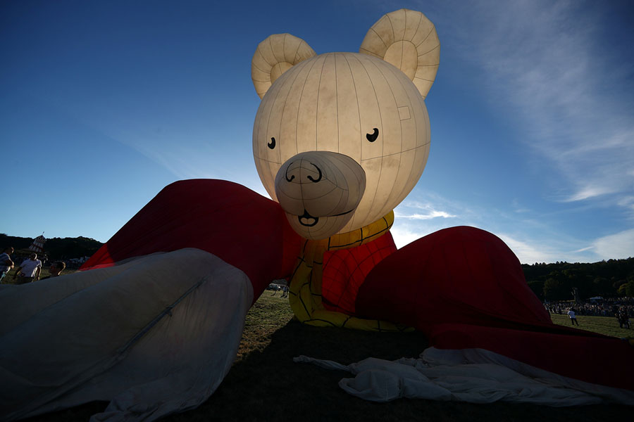 Read moreA hot-air balloon in the shape of the children's comic character Rupert Bear is seen tethered before the launch of the Bristol International Balloon Fiesta in Southwest England on August 9, 2018. #