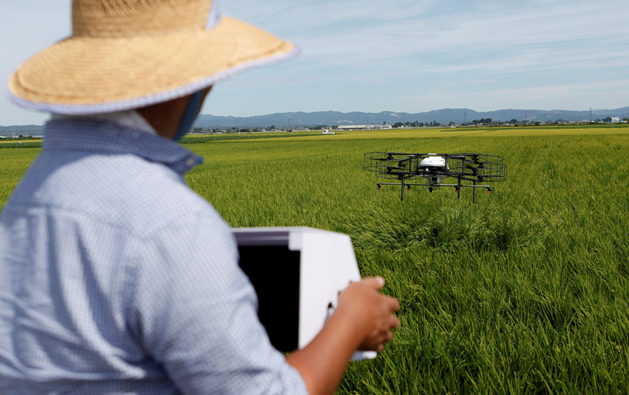 Read moreA Nileworks automated drone flies over rice plants, spraying pesticide while diagnosing growth of individual rice stalks, during a demonstration in Tome, Miyagi prefecture, Japan, on August 20, 2018. #
