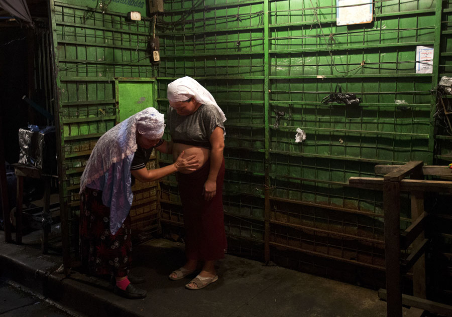 Read moreA woman prays over the belly of another woman at a prophetic church held in a closed street market in San Salvador, El Salvador, just after midnight on August 21, 2018. #