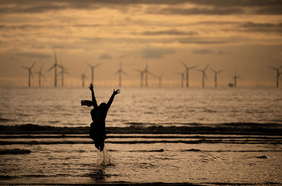 Read moreA young Muslim girl dances and runs in the sea as she and her family celebrate Eid al-Adha by watching the sun set at Crosby Beach in Liverpool, England, on August 21, 2018. #