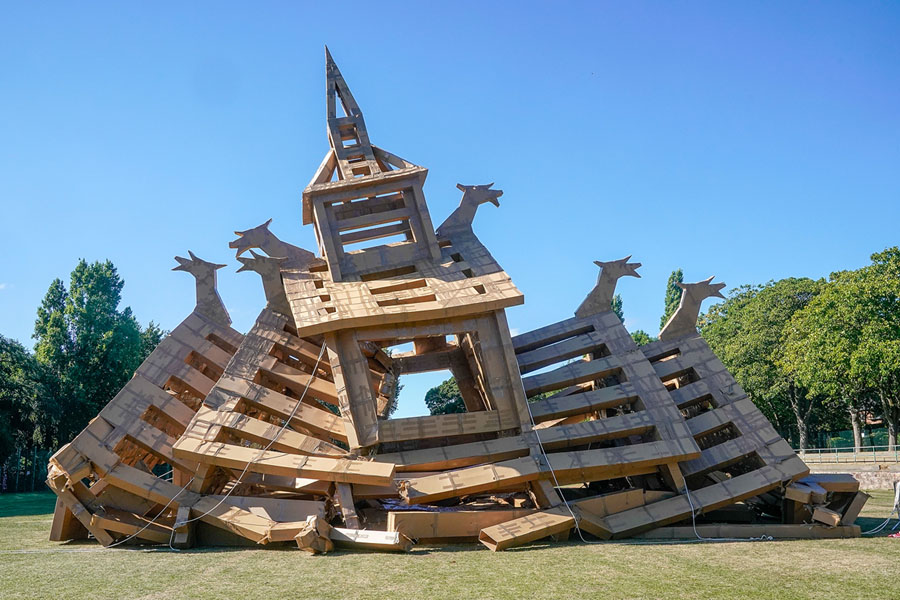 Read morePeople view a cardboard re-creation of a Viking stave church, which had partially collapsed, in Ashton Park, West Kirby, Liverpool, England, on August 10, 2018. The cardboard Viking church had been built to pay tribute to the area's Viking and Norse connections, but heavy rain earlier in the day may have weakened its structure. #