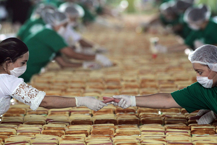 Read morePeople prepare hundreds of hot dogs in an attempt to break the Guinness record for the longest hot-dog line in Guadalajara, Mexico, on August 12, 2018. The record was set by creating a row of hot dogs that measured 4,649 feet long. #