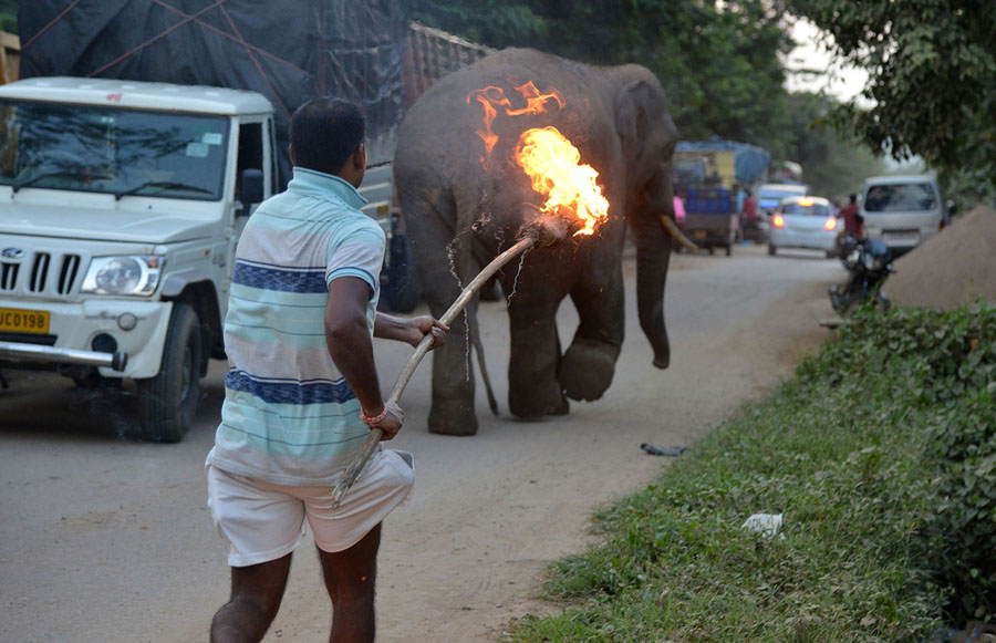 Read moreAn Indian man chases away a wild male elephant with fire at Baragoan in Guwahati, India, on August 9, 2018. The elephant came down from the Amchang Wildlife Sanctuary in search of food. Soon after, a forest official tranquilized it. #