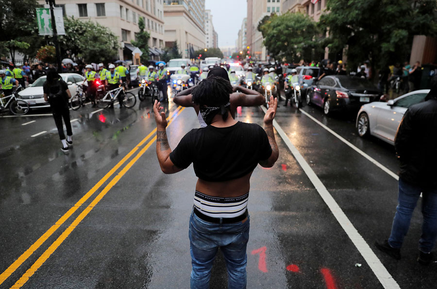 Read moreCounterdemonstrators stand in the street during a white nationalist–led rally marking the one year anniversary of the 2017 Charlottesville "Unite the Right" rally, in Washington, D.C., on August 12, 2018. #