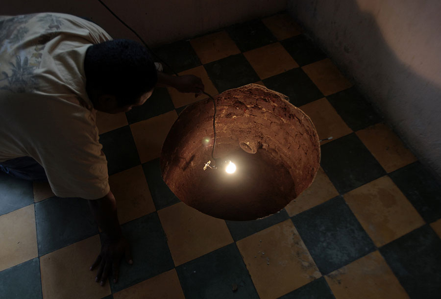 Read moreA man examines a 40-foot-deep sinkhole that opened up under the bed of a pensioner in Guatemala City on July 19, 2011. Inocenta del Rosal Hernandez, 65, awoke to a loud boom and found the earth under her bed had imploded, creating a circular hole. #