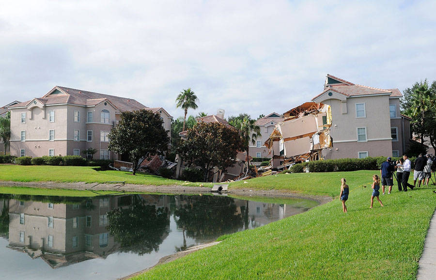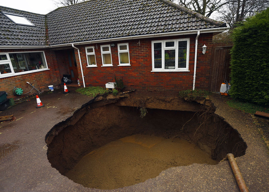 The ground beneath our feet, our highways, and our cities appears to be very sturdy. But, on rare occasions, that solid ground can simply open up without warning, dropping whatever it was supporting into an unpredictably deep hole. An undiscovered cavern or abandoned mine might collapse, or a broken water main or heavy storm might cause erosion, until the surface becomes a thin shell that drops away all at once. Sinkholes can be anywhere from a few feet wide and deep, to 2,000 feet in diameter and depth. Collected below are images of some of these sinkholes, both man-made and natural, around the world.