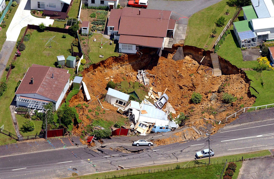 Read moreA house on Barry Road, near the Martha Gold Mine company offices, collapsed into a huge hole measuring 50 meters wide by 15 meters deep in the small town of Waihi, on the North Island of New Zealand, on December 13, 2001. A family of five, including three young children, escaped serious injury despite their home crashing into a chasm created by an old mine shaft collapsing in the middle of the night. #