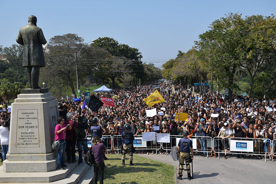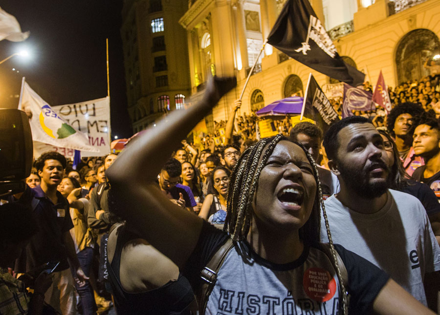Read moreA woman shouts slogans during a protest against the Brazilian government on September 3, 2018, after the fire that destroyed much of the National Museum of Brazil in Rio de Janeiro. #
