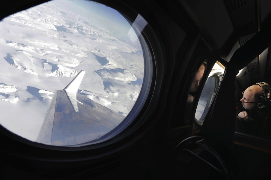 Read moreEric Ianson, the earth-science-flight-programs director at NASA, looks out at the Greenland ice sheet while inside a NASA Gulfstream III flying to measure loss to the country's ice sheet as part of the OMG research mission on March 13, 2018. #