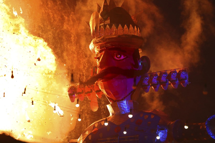 Read moreAn effigy of the demon king Ravana goes up in flames marking the end of the Dussehra festival in New Delhi, India, on October 19, 2018. Dussehra commemorates the triumph of Lord Rama over the demon king Ravana, marking the victory of good over evil. #