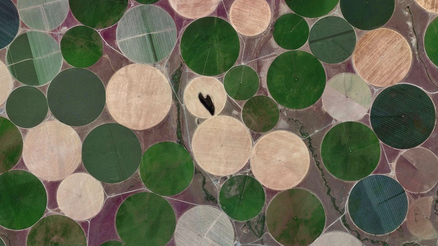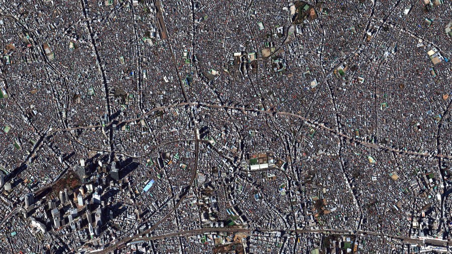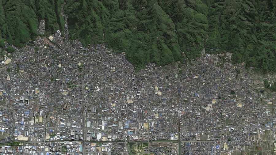 Read more(Clockwise, from upper left) Seven-square-mile views of Manhattan; Chaganbulage Administrative Village in Inner Mongolia; Venice, Italy; and farms in Plymouth, Washington #