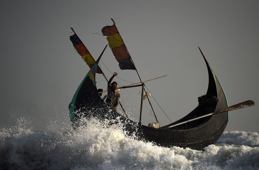 Read moreRohingya refugees crew a fishing boat from Shamlapur Beach heading out to the Bay of Bengal, near Cox's Bazar, Bangladesh, on March 21, 2018. The boat is unstable in rough seas, due to its shape. #
