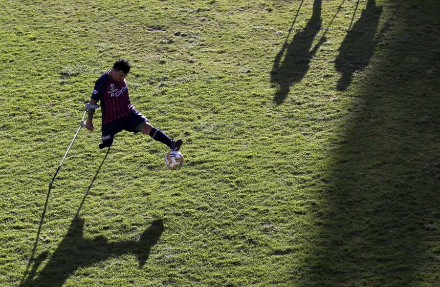 Read moreRobin Burbano controls the ball as he balances on crutches during a game against El Empalme, part of the national soccer tournament for players with amputated limbs, in Quito, Ecuador, on June 9, 2018. The amputee game is just taking off in Ecuador, and it has gotten a big boost from the country's president, Lenín Moreno, a paraplegic who uses a wheelchair and who was a major force in promoting the rights of disabled individuals around the world when he served as the United Nations's envoy on disability and accessibility from 2013 to 2016. #