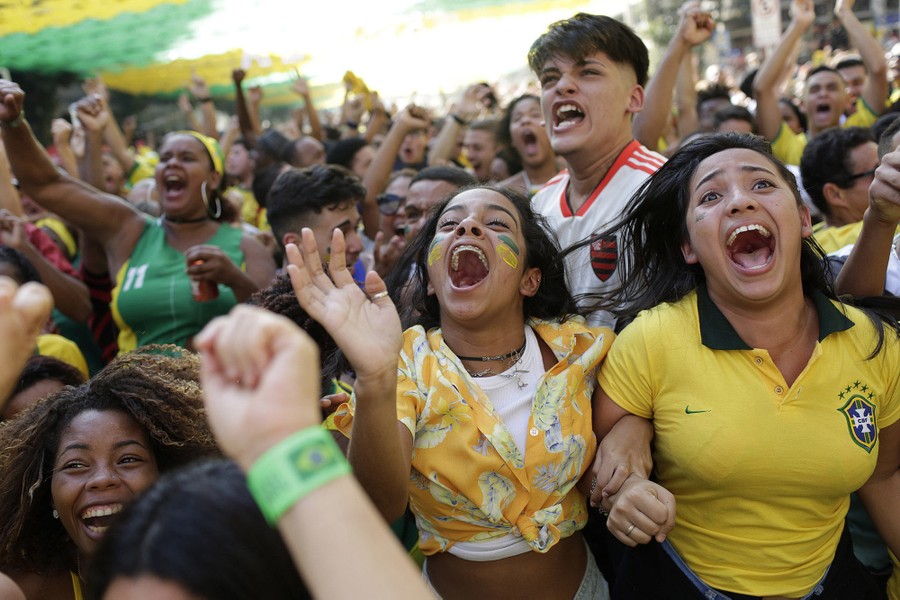 Read moreBrazilian soccer fans celebrate their team's first goal as they watch a live telecast of Brazil's World Cup match against Costa Rica in Rio de Janeiro, Brazil, on June 22, 2018. #