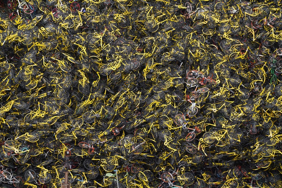 Read moreBicycles of various bike-sharing services sit piled among the rubble of houses partially demolished in Shanghai, China, on July 8, 2018. Supply vastly outstripped demand, and eager companies ran into trouble with local governments as dockless bike-share ventures placed millions of bikes on the streets of China's cities, only to have many impounded, or to go bankrupt and abandon their inventories. The end result: countless piles of surplus or abandoned bike-share bicycles dotting the landscape in urban China. #