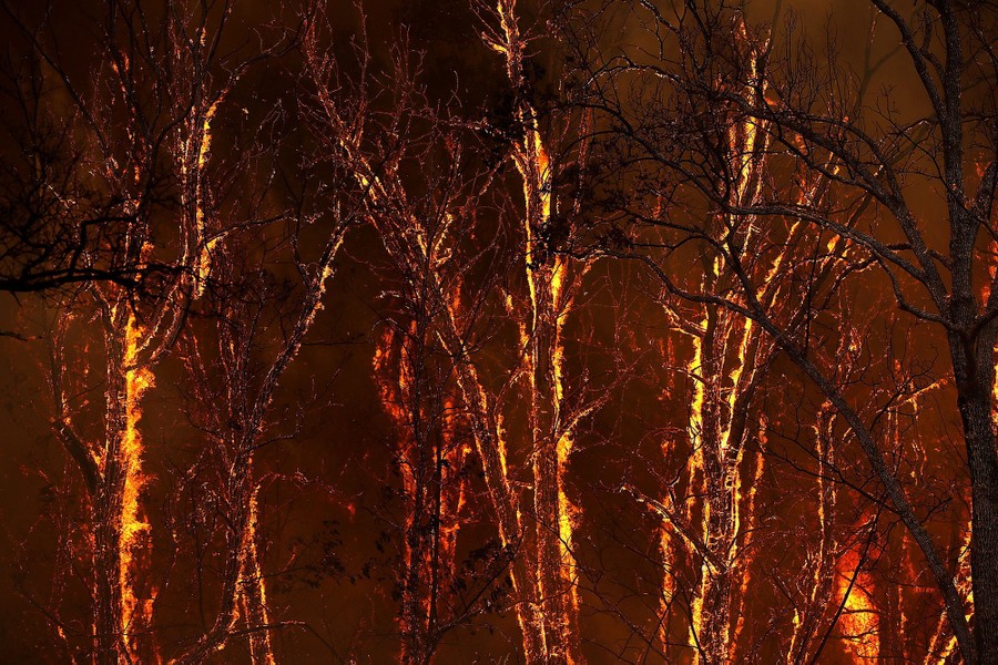 Read moreFlames from the Carr Fire burn through trees along Highway 299 on July 27, 2018, near Whiskeytown, California. One of several massive wildfires to sweep across parts of California this year, the Carr Fire burned more than 350 square miles, destroyed 1,600 buildings, and killed eight people before it was contained, after burning for more than five weeks. #