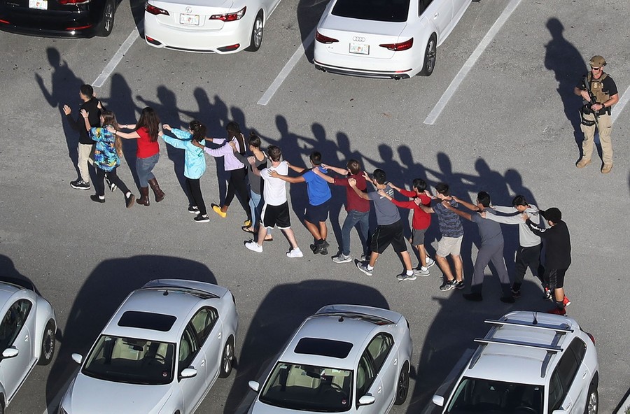 Read morePeople are walked out of Marjory Stoneman Douglas High School after a shooting at the school that killed 17 students and staff members and injured 17 others on February 14, 2018, in Parkland, Florida. The attack sparked a protest movement among students and others nationwide, which led to numerous demonstrations, marches, and meetings with political leaders, seeking stronger gun-control legislation. #
