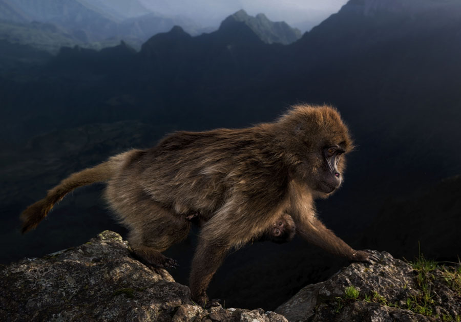 Read moreEarly Riser. Winner, 15–17 Years Old—Riccardo could not believe his luck when, at first light, this female gelada, with a week-old infant clinging to her belly, climbed over the cliff edge close to where he was perched. He was with his father and a friend on the high plateau in Ethiopia's Simien Mountains National Park to watch geladas—a grass-eating primate found only on the Ethiopian Plateau. On this day, a couple of hours before sunrise, Riccardo's guide led them to a cliff edge where the geladas were likely to emerge, giving him time to get into position before the geladas woke up. He was in luck. After an hour's wait, just before dawn, a group started to emerge not too far along the cliff. #