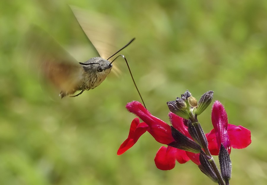 Read moreHumming Surprise. Winner, 10 Years and Under—On holiday with his family in France, Thomas was eating supper in the garden on a warm summer’s evening when he heard the humming. The sound was coming from the fast-beating wings of a hummingbird hawkmoth, hovering in front of an autumn sage, siphoning up nectar with its long proboscis. With the moth moving quickly from flower to flower, it was a challenge to frame a picture. But Thomas managed it, while capturing the stillness of the moth’s head against the blur of its wings. #