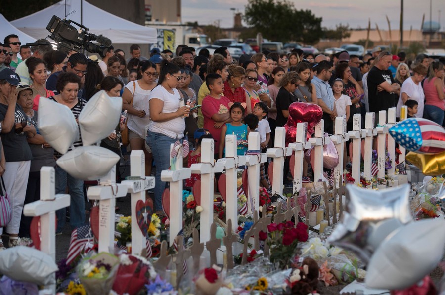 Read morePeople pay their respects at a makeshift memorial for victims of a mass shooting that left a total of 22 people dead at the Cielo Vista Mall Walmart in El Paso, Texas, on August 5, 2019. #