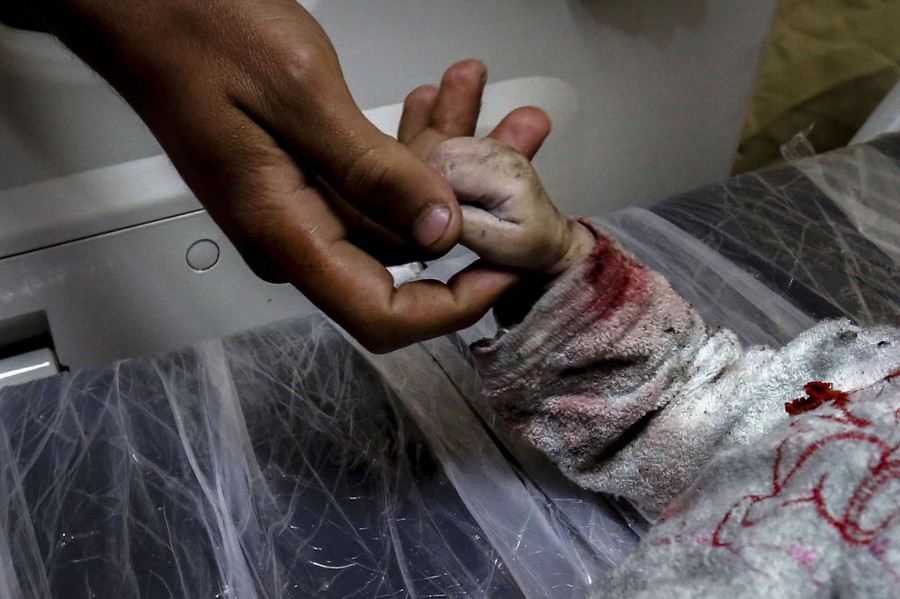Read moreA man holds the hand of Maria al-Gazali, a Palestinian baby, as her body lies on a stretcher in a hospital in Beit Lahia, in northern Gaza Strip, on May 5, 2019. Three Palestinians, including Maria, were killed in Israeli strikes in northern Gaza, the health ministry in the Hamas-run enclave said. #