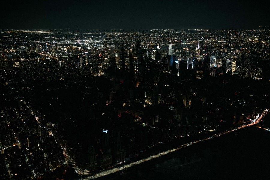 Read moreSeen from the air, a large section of Manhattan's Upper West Side and Midtown neighborhoods sits in darkness during a partial blackout on July 13, 2019, in New York City. City and Con Edison officials claimed over 60,000 customers were impacted by the power loss, disrupting traffic signals, subway service, and Manhattan's busy theater district for several hours. #