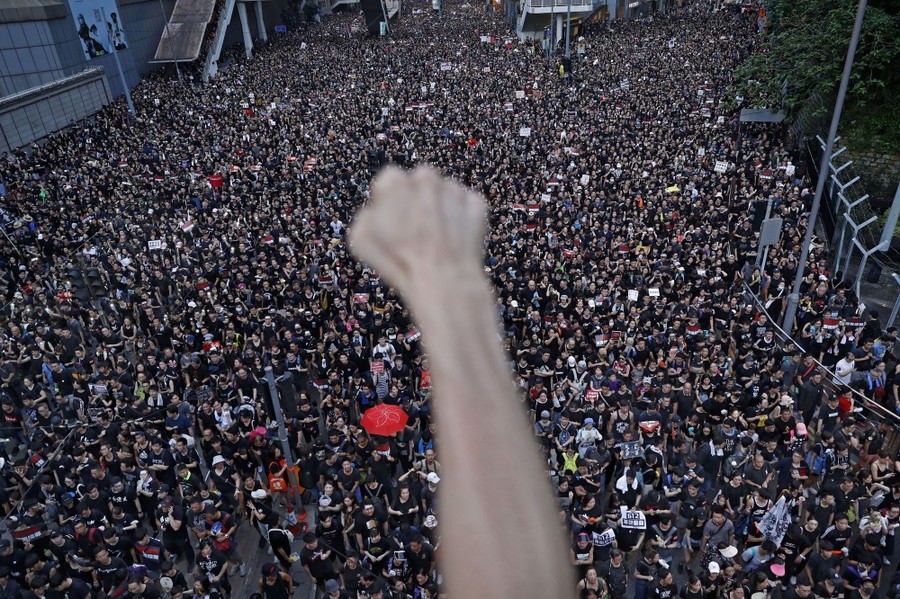 Read moreA protester clenches his fist as hundreds of thousands of people march on the streets to stage a protest against an unpopular extradition bill in Hong Kong on June 16, 2019. #