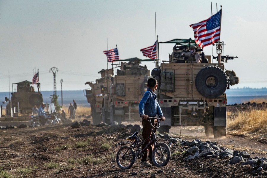 Read moreA Syrian boy on his bicycle looks at a convoy of U.S. armored vehicles patrolling fields near the northeastern town of Qahtaniyah at the border with Turkey, on October 31, 2019. U.S. forces accompanied by Kurdish fighters of the Syrian Democratic Forces (SDF) patrolled part of Syria's border with Turkey, in the first such move since Washington withdrew troops from the area earlier in October, an AFP correspondent reported. #