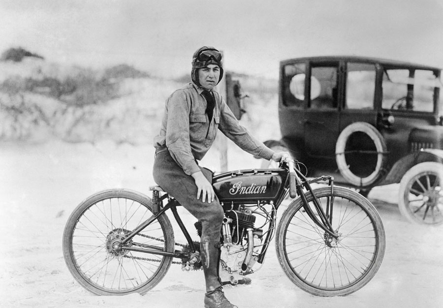 Read moreIn April 1920, Herbert McBride broke the world's motorcycle record for amateurs with a speed of 104.4 miles per hour. McBride, along with his teammate, Indian Motorcycles Factory Racing Team professional rider Eugene Walker, broke two dozen speed records over the course of several days along the sands of Ormond Beach, Florida. #