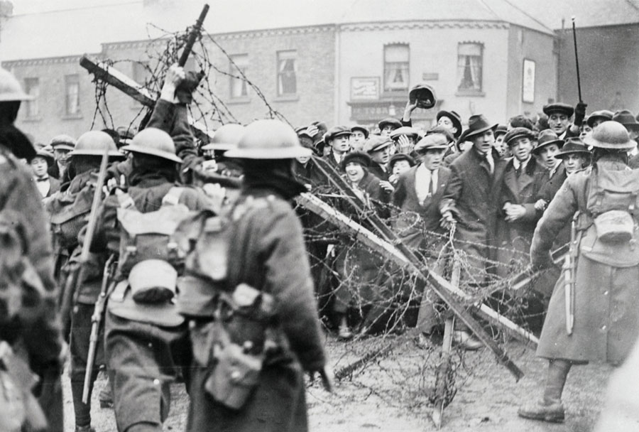 Read moreA crowd of Sinn Fein sympathizers confronts British troops in front of a barricade that barred the road to Mountjoy prison, in Dublin, Ireland, on April 30, 1920. Earlier in April, Irish Republican Army prisoners in Mountjoy prison had begun a hunger strike, demanding prisoner-of-war status, during the Irish War of Independence (1919–21). #