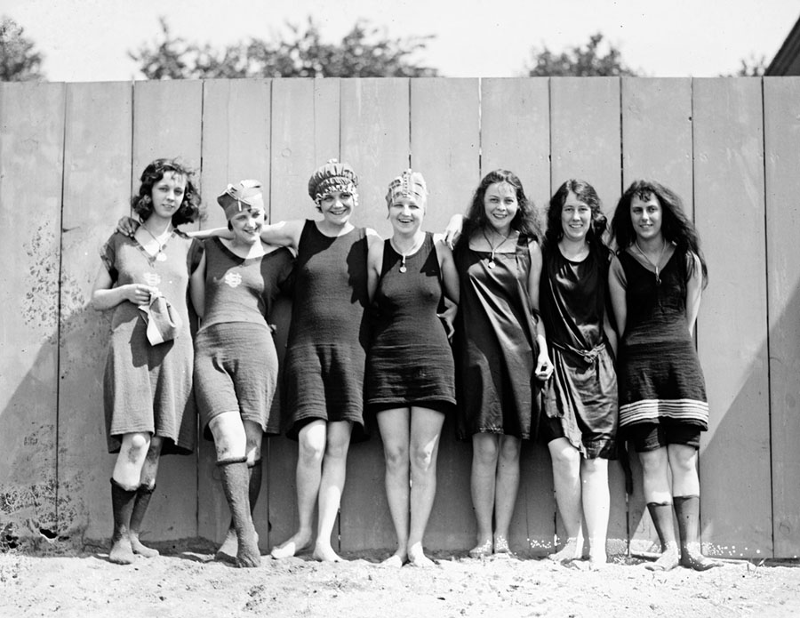 Read moreOriginal caption, from May 29, 1920: "Bare legs and scanty one piece bathing suits were very much in evidence at the opening of Washington's municipal bathing beach today. Officials have agreed to disregard as precedents the prohibitory orders issued at Coney Island and Atlantic City." #