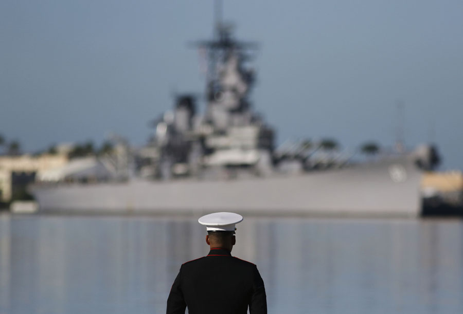 Read moreA U.S. marine stands in front of the USS Missouri during a ceremony to mark the 78th anniversary of the Japanese attack on Pearl Harbor, on December 7, 2019, at Pearl Harbor, Hawaii. #