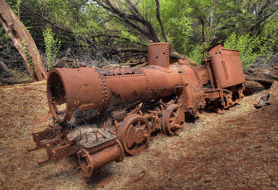 Read moreThe remains of an old locomotive and tender, brought to the island of Lāna‘i by the Maunalei Sugar Company in 1899, and abandoned not long after, when the company went bankrupt #