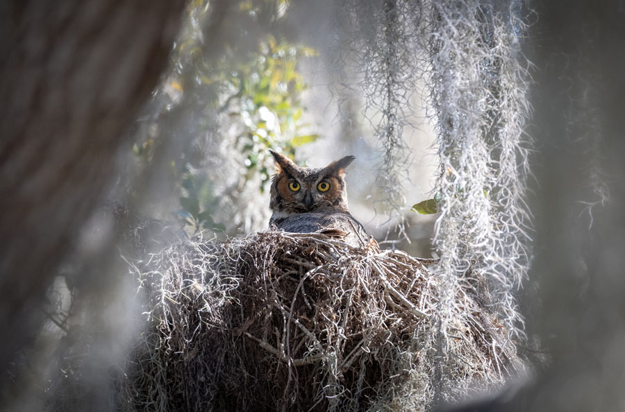 Read moreA great horned owl sits in a nest framed by Spanish moss in central Florida. #