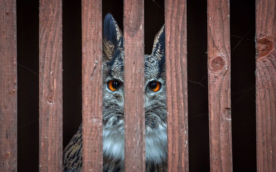 Read moreAn eagle owl is seen in an enclosure at a falcon center of the All-Russian Research Institute of Environmental Protection in Moscow. #