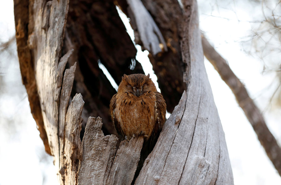 Read moreA scops owl sleeps in a tree trunk at the Kirindy forest reserve near the city of Morondava, Madagascar. #