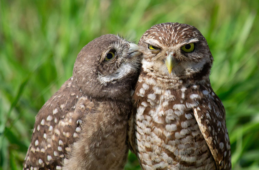 Read moreTwo burrowing owls, a chick and an adult, share a tender moment in south Florida. #