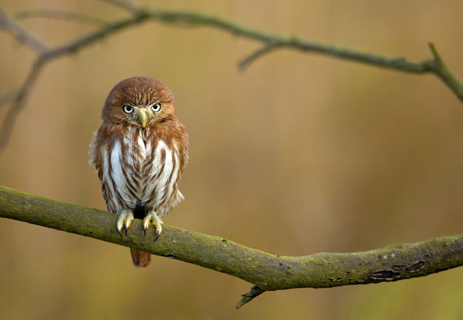 Read moreA ferruginous pygmy owl rests on a branch. #