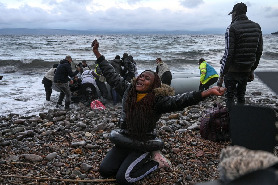 Read moreA woman reacts as a boat transporting refugees and migrants originating from Gambia and the Republic of the Congo lands on Lesbos on February 29, 2020, after the passengers were rescued while crossing between Turkey and Greece. #