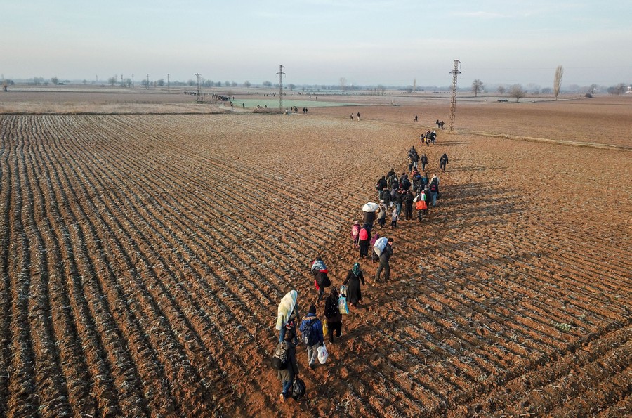Last week, the Turkish government announced that it was no longer able to support a deal made with the European Union in 2016 to prevent migrants from crossing into Europe. Shortly afterward, thousands of men, women, and children set off for the border with Greece, attempting to leave Turkey by land or by sea, only to meet barbed-wire fences and security forces. Turkey has been hosting several million refugees from Syria, as well as migrants and refugees from Africa and other parts of the Middle East. Turkish officials said they were unable to cope with a recent increase in refugees, following escalations in the fighting in Syria, while others have accused Turkish President Recep Tayyip Erdoğan of “weaponizing” the migrants, pressuring the EU to support Turkey’s operations in Syria.